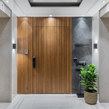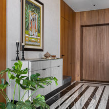 Nestled in the prime locale of Five Gardens, Matunga, this luxurious 3BHK residence is a seamless blend of warmth, functionality, and elegance. Originally a 4BHK, the space was reimagined with fluid design, integrating concealed storage, rich wooden textures, and natural materials for a cohesive aesthetic.A 25’ teakwood-clad feature wall anchors the living space, complementing the expansive balcony that extends the indoors.