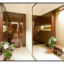 The jali also works as a visual element in the passage area accentuating the sofa back.
